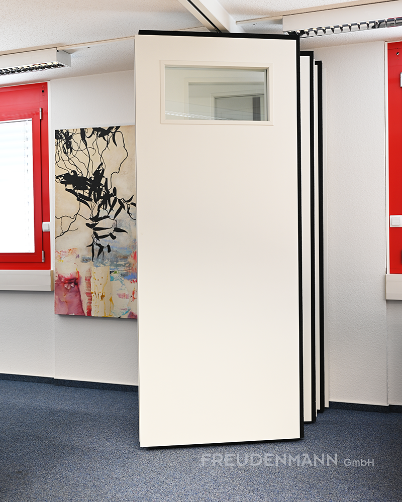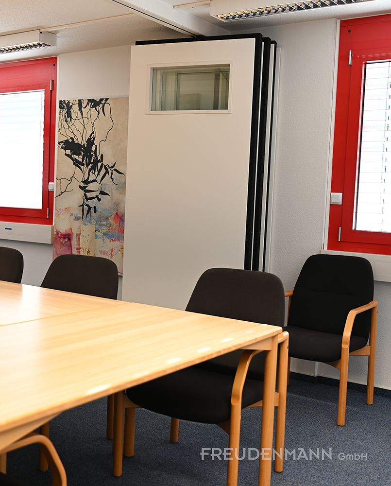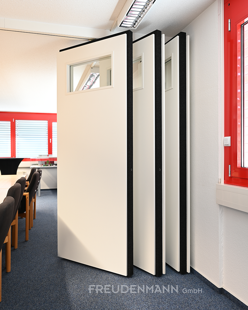 Unsere hochwertigen Faltschiebewände ermöglichen eine flexible Raumabtrennung ganz ohne Bodenschiene – ideal für moderne Besprechungsräume, Büros oder multifunktionale Arbeitsbereiche.