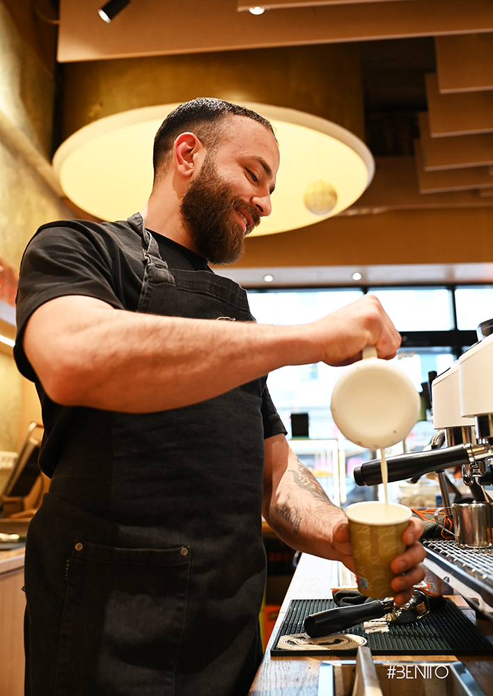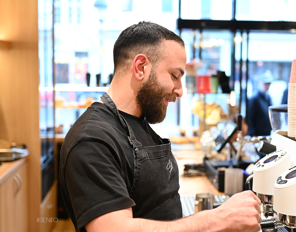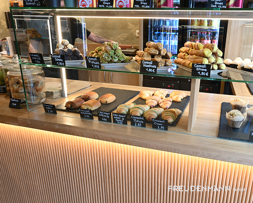Bei diesem Projekt ging es um ein Café-to-go auf engstem Raum. Ziel war maximale Platzausnutzung bei einem sauberen, ergonomischen und schnellen Arbeitsablauf. Planung und Möblierung sind exakt auf die täglichen Handgriffe abgestimmt. Jeder Laufweg sitzt, jeder Arbeitsbereich greift ineinander.