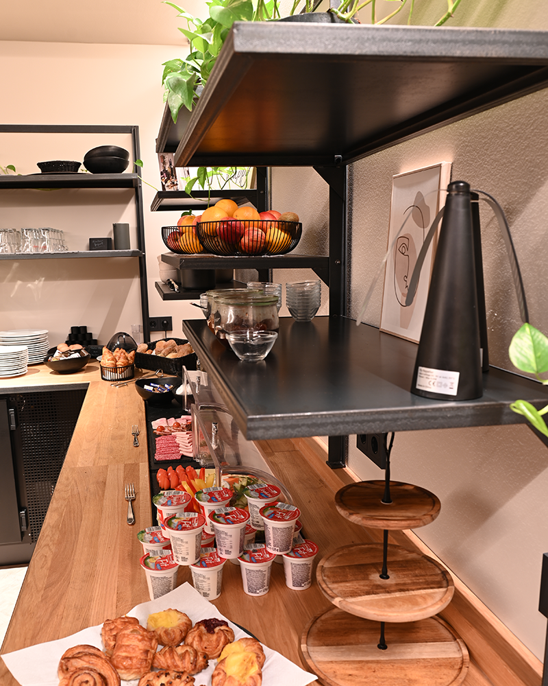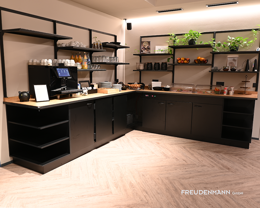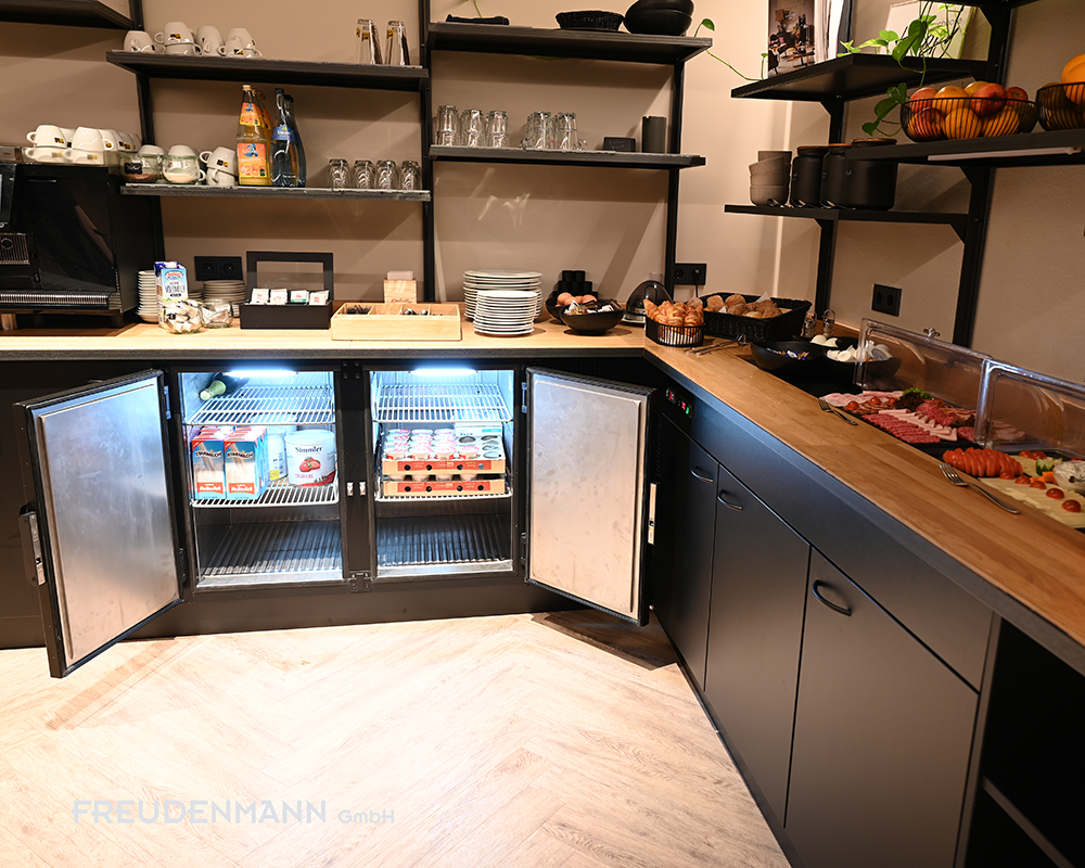 Für das Hotel Hopfenschlingel in Rastatt fertigten wir ein individuelles Frühstücksbuffet in Winkelform.