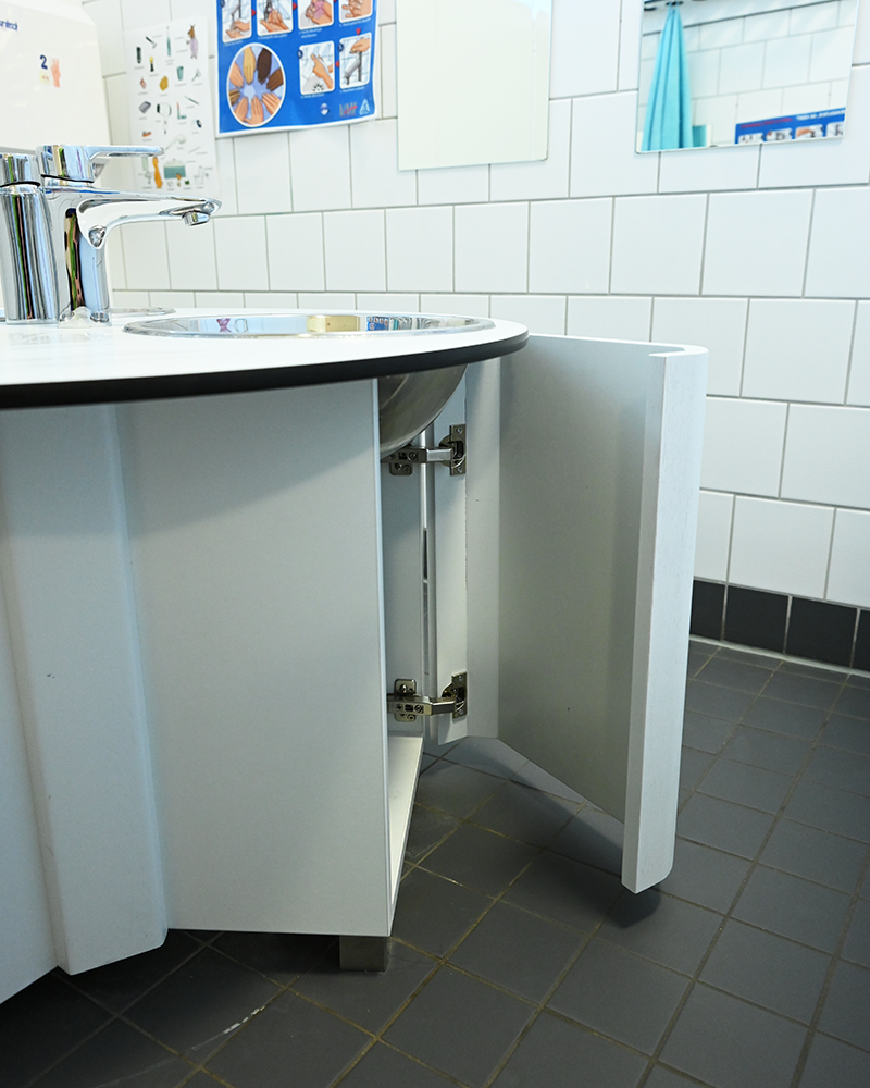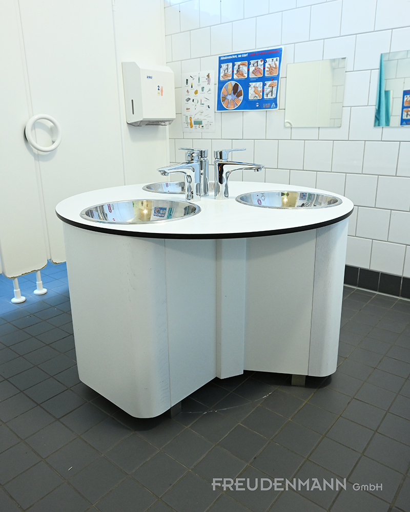 Auf engstem Raum haben wir eine Waschtischinsel für den Kindergarten realisiert.