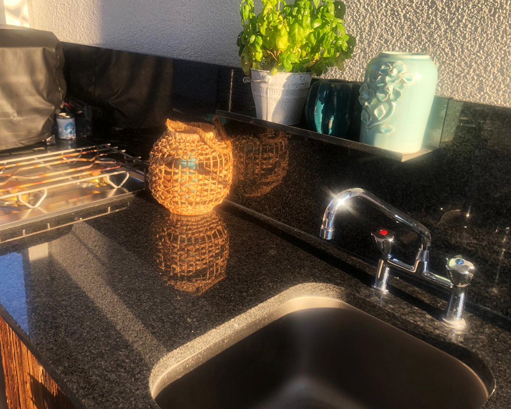 Die Arbeitsplatte aus Granitstein sorgt für Langlebigkeit und eine edle Haptik.